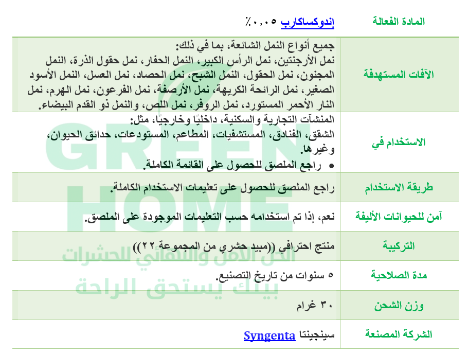 - لا ترش أي مبيد فوق الطعم بعد وضعه